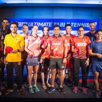 CEAT UTT 1- (L to R) Manika Batra of Oilmax-Stag Yoddhas, Aruna Quadri of Oilmax-Stag Yoddhas, Sabine Winter of RP-SG...