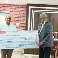 PNB’s Shri P.Mahendar, Zonal Manager, Chennai and Shri Chetan Masoor, Circle Head presenting the cheque to Tamil Nadu Medical Services...