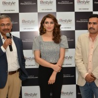 L-R: Mr.Satyanarayanan, President-Operations, Lifestyle International Pvt.Ltd., Actress Hansika Motwani, Mr. Srinivasa Rao, Sr.Vice President – Marketing, Lifestyle Lifestyle announces the launch...