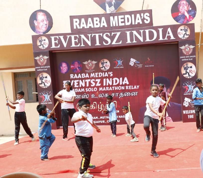 Raaba media had been started with the selfless service of providing suitable platform for the talented artists and showcasing their individual talents to the world. To create awareness, to uplift, encourage and felicitate this wonderful Silambam art across the world, Raabamedia’s Eventsz India organized three days non-stop day and night world record event ‘Silambam solo Marathon Relay’ in the premises of SMK Vidhyashram , Muthamizh nagar, Kodungaiyur, Chennai to make an ultimate record in Guinness world records, Asian book of world records and Indian book of world records. Its purpose is to make all well talented Silambam artists to achieve unbeatable world record .No one has ever tried this record event in Silambam. Raaba media proudly says that more than 800 participants will be going to participate to create an unbeatable world record.