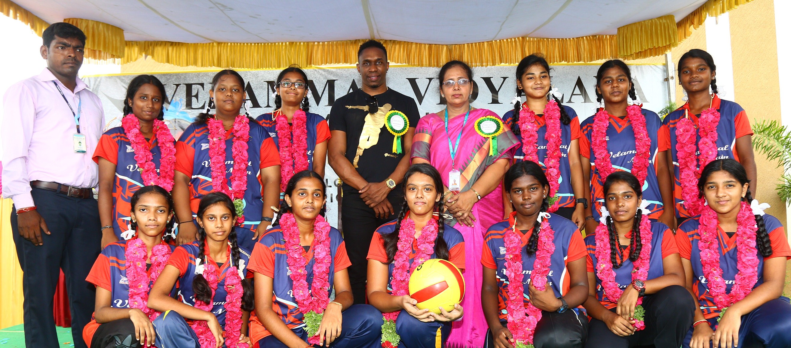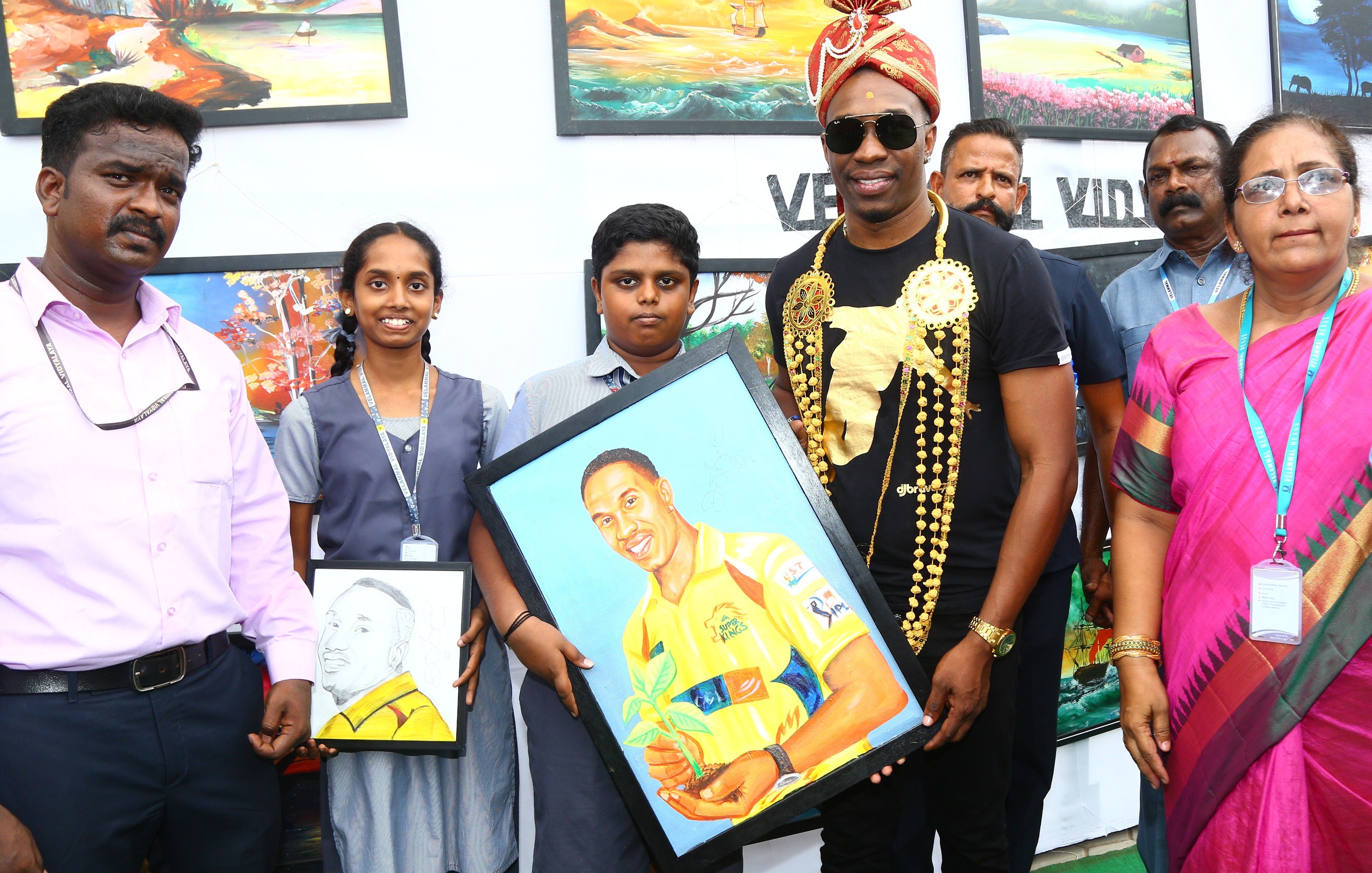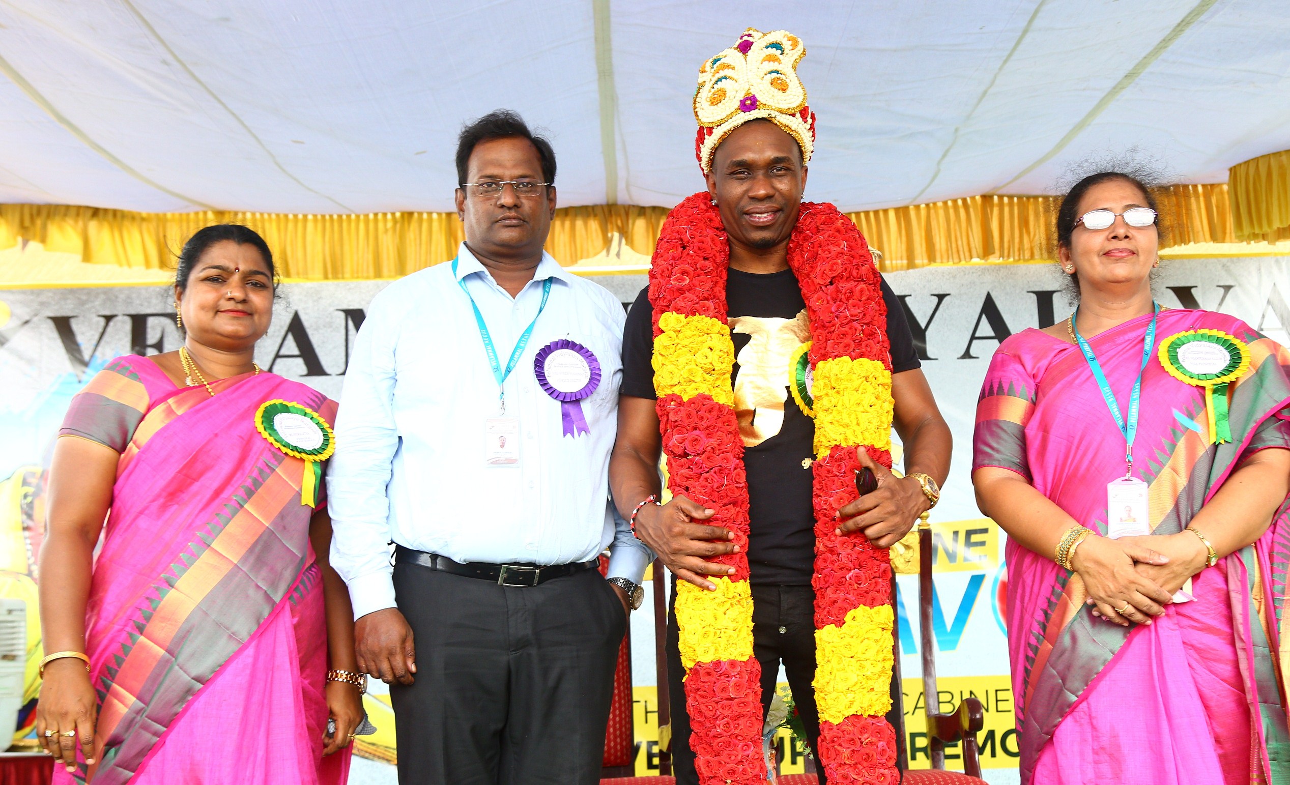 DJ Bravo, the Global Cricket Icon swept through the hearts of Velammalians at Velammal Vidyalaya, Mangadu on Monday. He felicitated the exemplary sports achievers and inaugurated the Students’ Cabinet Investiture Ceremony.