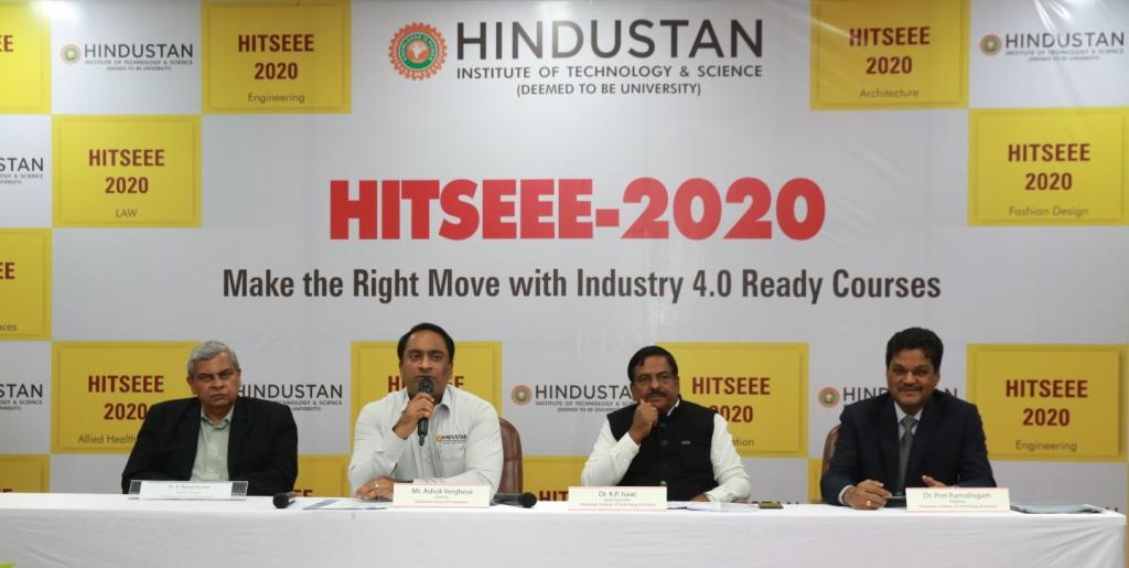 இத்தகைய சிறப்பு வாய்ந்த ஹிந்துஸ்தான் தொழில்நுட்பம் மற்றும் அறிவியல் கல்வி நிறுவனமானது, வரும் கல்வியாண்டில் பொறியியல் கல்விக்கான ஆன்லைன் நுழைவுத் தேர்வுக்கான தேதிகளை அறிவித்துள்ளது. பி.டெக்., பி.ஆர்க், பி.டெஸ்., ஆகிய படிப்புகளுக்கு 2020-ஆம் ஆண்டு ஏப்ரல் 25 முதல் 30 வரை தேர்வு நடைபெறும். இந்தத் தேர்வானது நாடு முழுவதும் உள்ள 50 மையங்களில் நடத்தப்படும். இதற்கான நுழைவுத் தேர்வு விண்ணப்பங்களை இணையதளத்தில் www.hindustanuniv.ac.in இருந்தும், நேரடியாக விண்ணப்பங்களைப் பூர்த்தி செய்தும் அளிக்கலாம்.