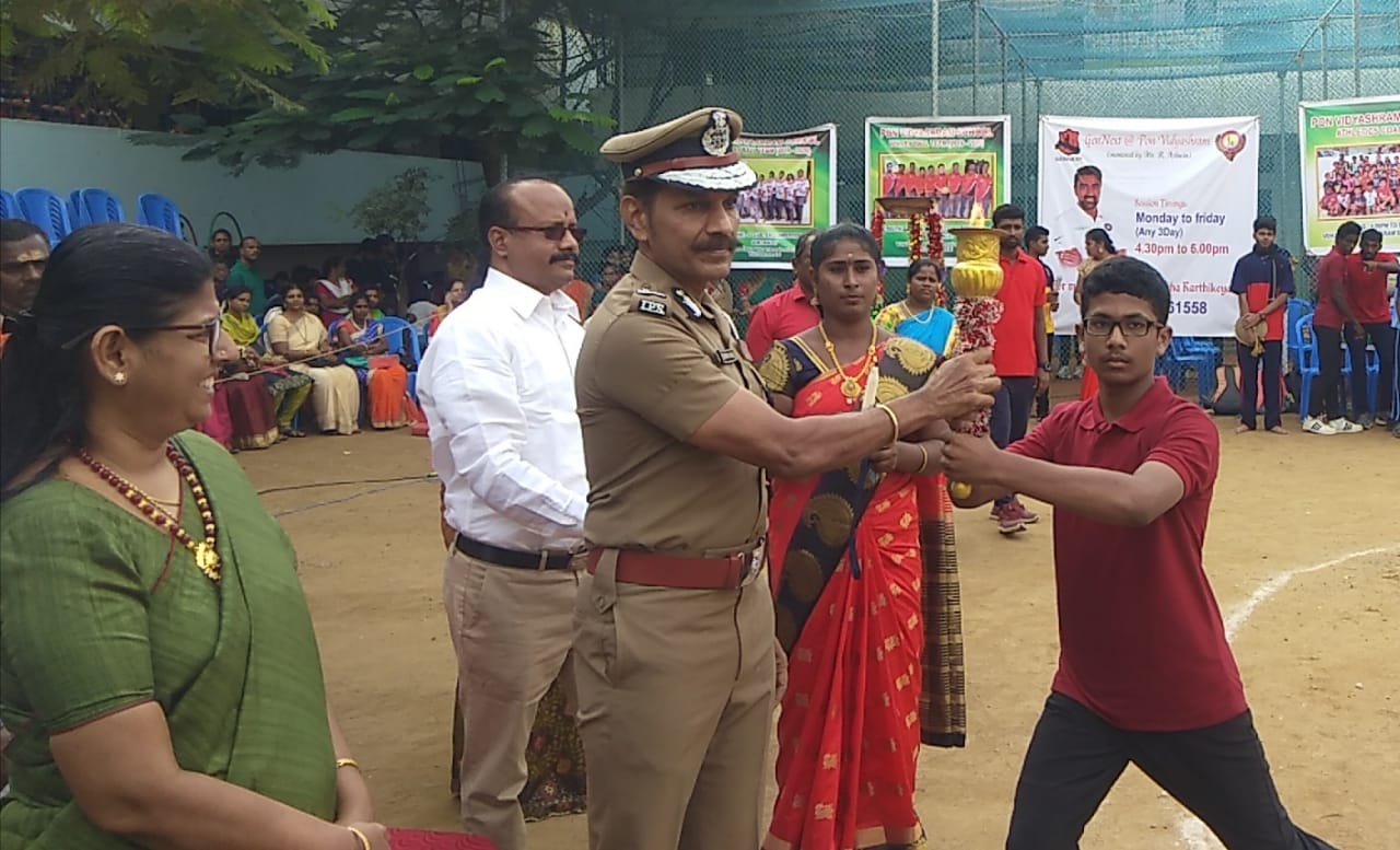 முதல்நாள் 19.12.19 வியாழக்கிழமை 1 முதல் 5 வகுப்புகளுக்கான விளையாட்டுப் போட்டிகளுக்கான பரிசளிப்பு, கலைநிகழ்வுகள் யாவும் நடைபெற்றன. காவல் துறை இணை கமிஷனர் ACP திரு ஜெ. ஜெயகரன் அவர்களும், விளையாட்டுத் துறையில் முத்திரை பதித்த வீராங்கனை செல்வி விலாசினி ஆகிய இருவரும் தலைமை மற்றும் சிறப்பு விருந்தினர்களாகக் கலந்து