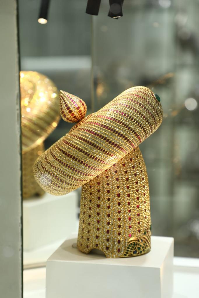 கடந்த 11 மாதங்களாக தனது நகை பட்டறையில் இதனை வடிவமைத்துள்ளார் ஜெயந்திலால். இதையடுத்து இன்று காலை தனது குடும்பத்தினருடன் கோயிலுக்கு வந்து உற்சவருக்கு சமர்ப்பித்து வழிபாடு செய்தார்.