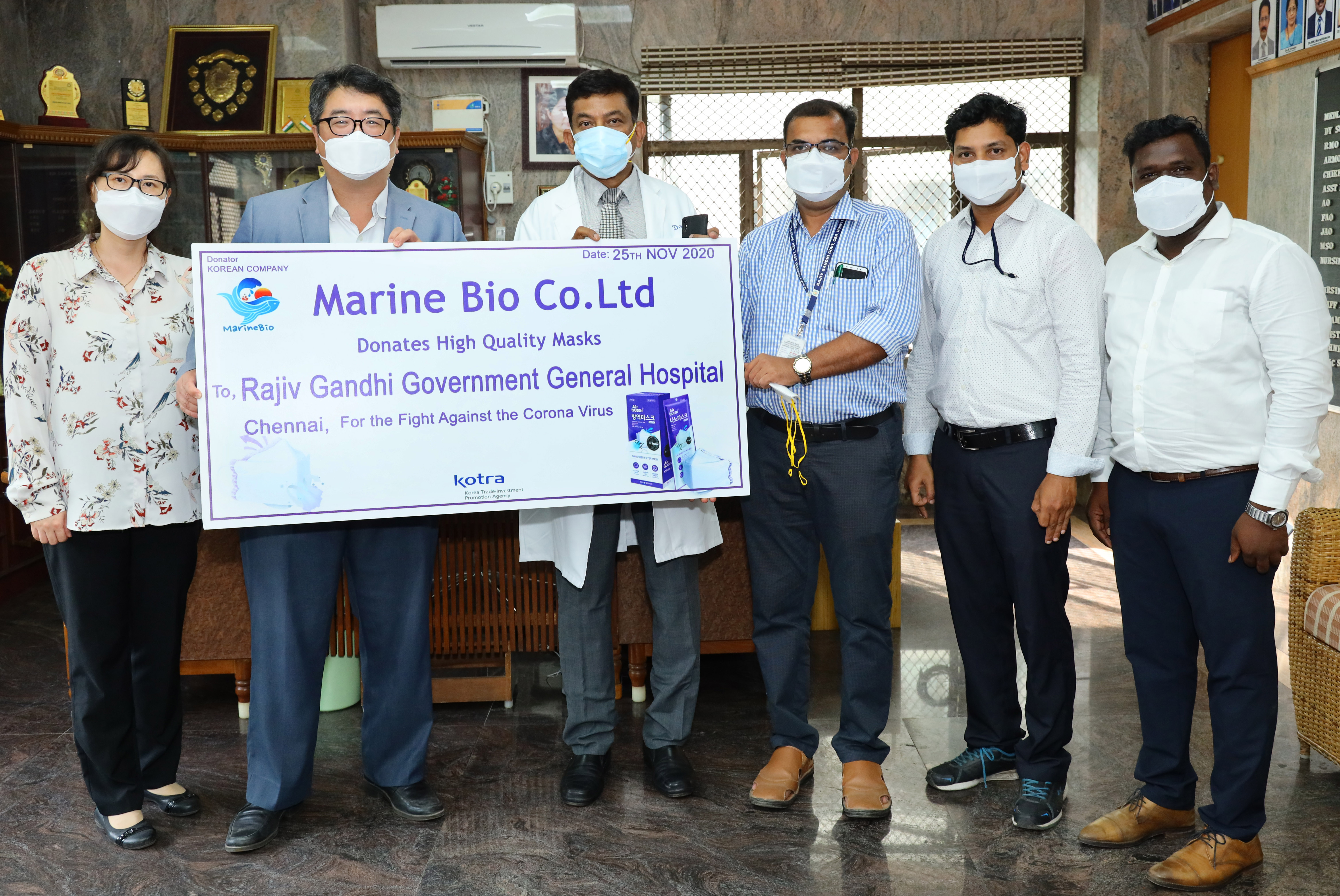 Dr. E. Theranirajan, Dean, Rajiv Gandhi Government General Hospital, said “Living in pandemic times, the need for protective face masks for the medical professionals is always critical. I thank Marine Bio and KOTRA for their kind gesture and support in the fight against coronavirus”.