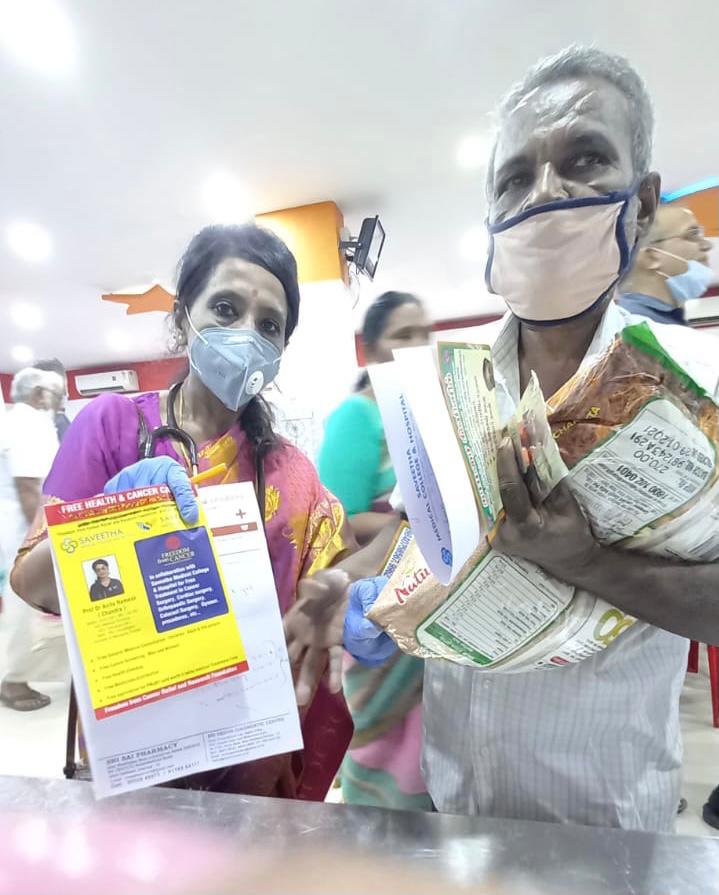 Masks, Sanitizers, Medicines, Atta Bags etc were distributed to those attended the Camp. Health Check Up was also done in collaboration with Saveetha Medical College. The Camp was also a part of the Ayushman Bharat project initiated by the Prime Minister of India.