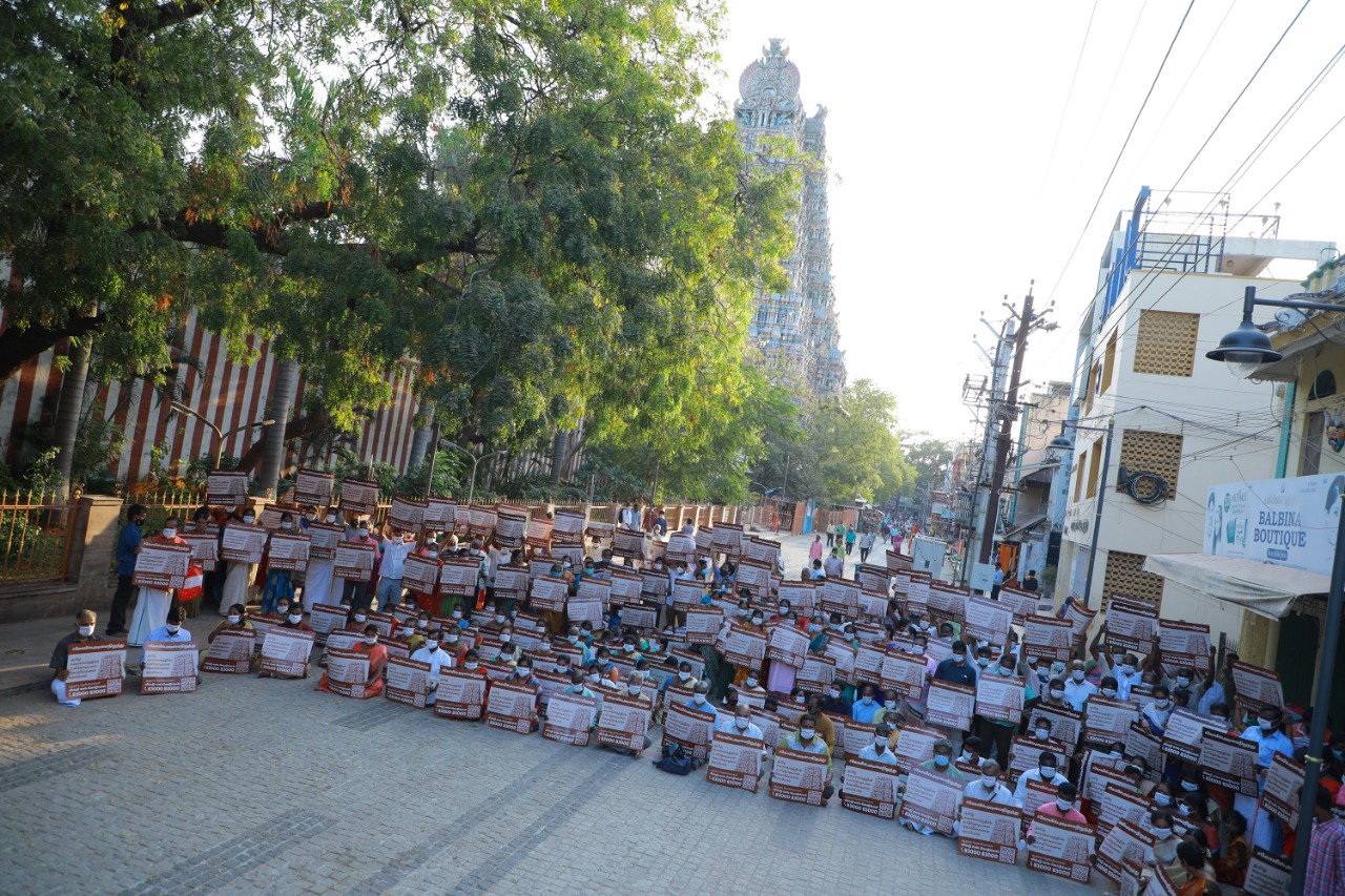 இந்து சமய அறநிலையத் துறையின் கட்டுப்பாட்டில் இருந்து கோவில்களை விடுவிக்க கோரி சத்குரு தொடங்கியுள்ள கோவில் அடிமை நிறுத்து இயக்கத்திற்கு மதுரையைச் சேர்ந்த ஏராளமான பொதுமக்கள் ஆதரவு தெரிவித்தனர்.