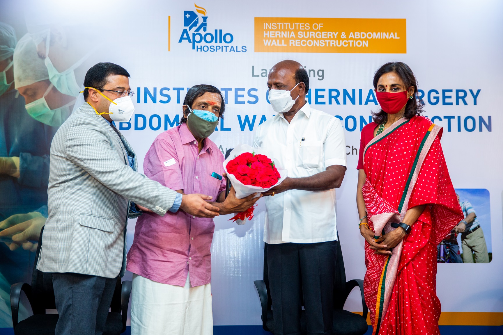 Chennai: Apollo Hospitals Chennai, a part of Apollo Hospitals Group, Asia’s largest and most trusted healthcare group, today launched ‘Institute of Hernia Surgery and Abdominal Wall Reconstruction’. Minister for Health and Family Welfare, Thiru. MA. Subramaniam, inaugurated the Institute at Apollo Hospital Chennai, which is a comprehensive specialty centre for hernia care.