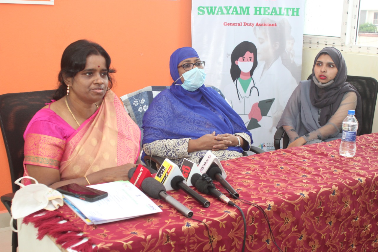 ‘ ஸ்வயம் ஹெல்த்’ (Swayam Health)திட்டத்தில் முதற்கட்டமாக இணைந்து மருத்துவ வாழ்வாதார கல்வியை முடித்த மாணவர்களுக்கு சான்றிதழ் வழங்கும் விழா டிசம்பர் 6 ஆம் தேதியான இன்று நடைபெற்றது. இந்த விழாவில் சிறப்பு விருந்தினராக கலந்து கொண்ட முனைவர் மெஹ்முதா பேகம் (Dr.Mahmooda Begum) மருத்துவ உதவியாளர் பயிற்சியில் வெற்றி பெற்ற மாணவ மாணவிகளுக்கு பணி நியமன ஆணையையும் வழங்கினார்.