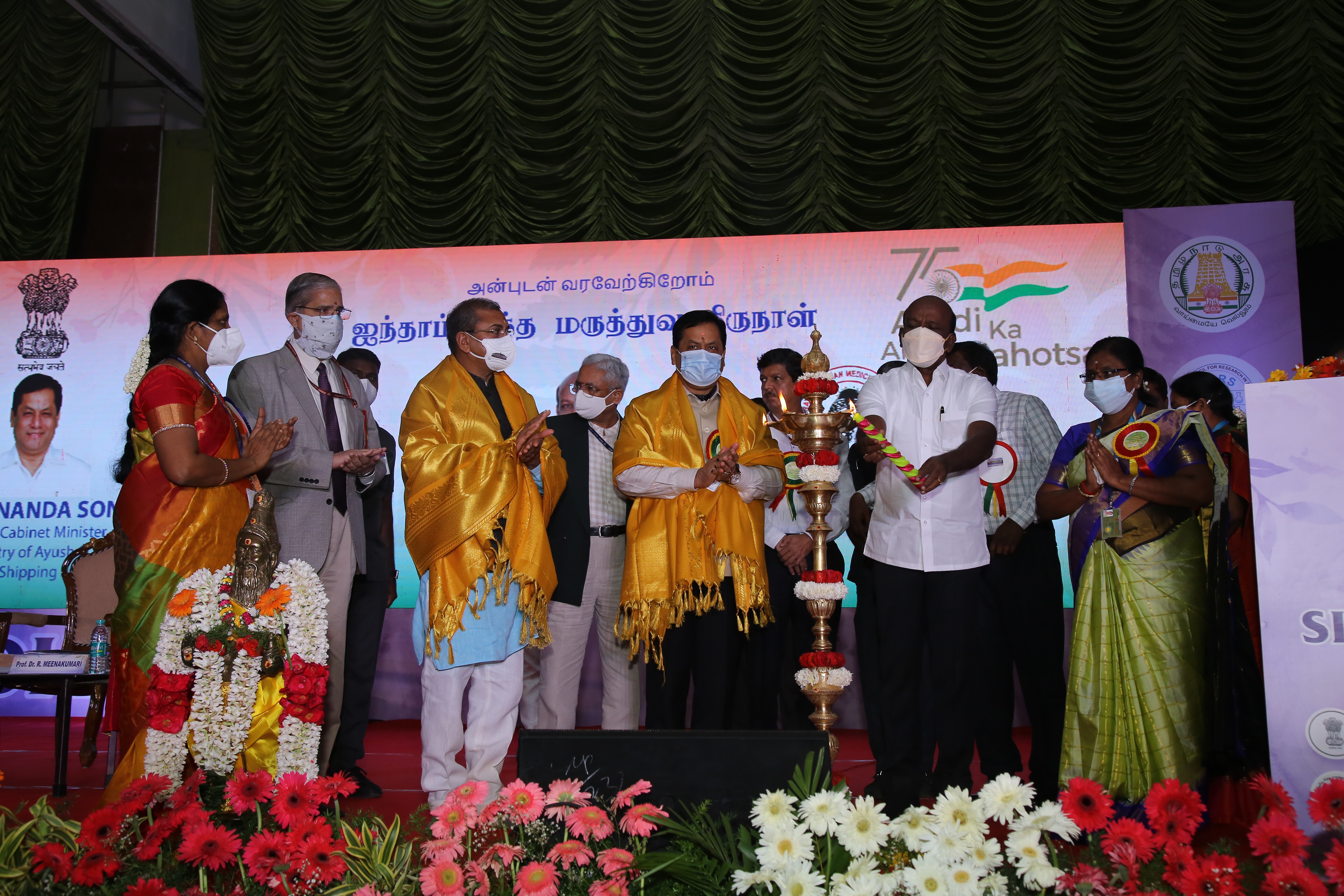 The auspicious occasion was graced by the Chief Guest, Shri Sarbananda Sonowal, Honourable Cabinet Minister, Ministry of Ayush & Ministry of Ports, Shipping and Waterways, Guests of Honor, Dr. Munjpara Mahendrabhai Kalubhai, Honorable Minister of State, Ministry of Ayush and Ministry of Women and Child Development, Shri. Maa. Subramanian, Honourable Minister of Health & Family Welfare Development, Government of Tamil Nadu, with their esteemed presence.