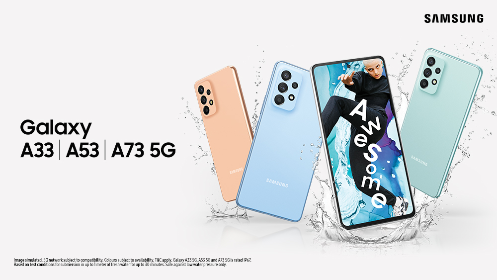 The new Galaxy A53 5G, Galaxy A33 5G, Galaxy A23 and Galaxy A13 will be available in four awesome colours – Peach, Blue, Black and White.