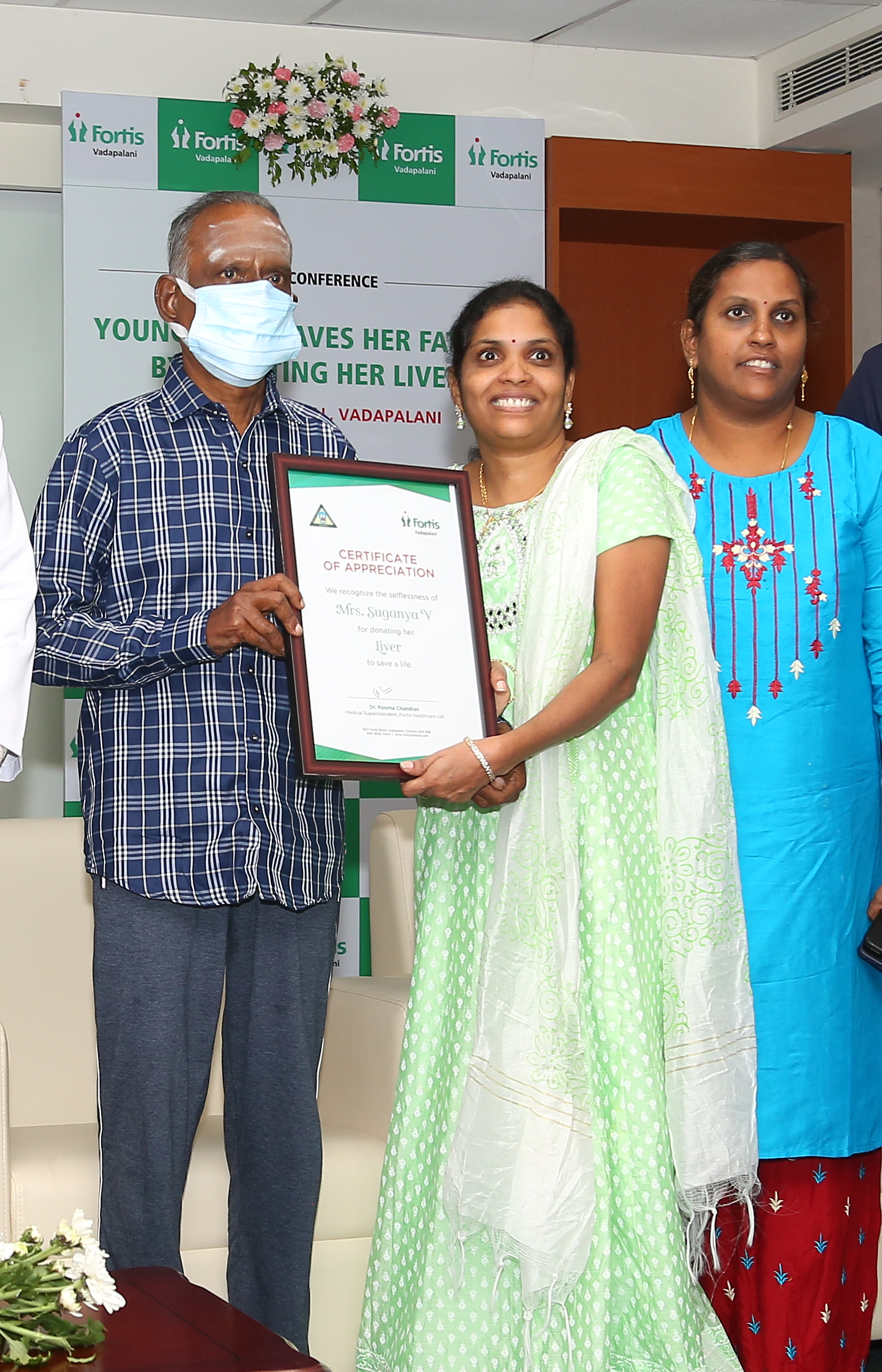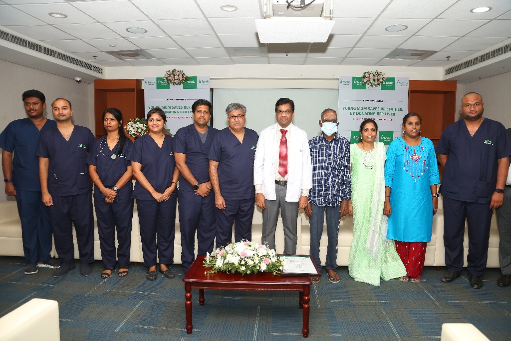 ‘It gives us immense pleasure to see both the donor and recipient in good health and living a normal life’, added Dr. Poorna Chandran, Medical Superintendent at Fortis Hospital, Vadapalani. ‘Firstly, we have to appreciate the contribution of the young mother who came forward to donate part of her liver for her ailing father and her husband who supported her resolve’. He also congratulated the multidisciplinary surgical team, infection care team, dieticians, physiotherapists, and nurses who worked in close coordination for yet another case of clinical excellence under the leadership of Dr. Vivek Vij.