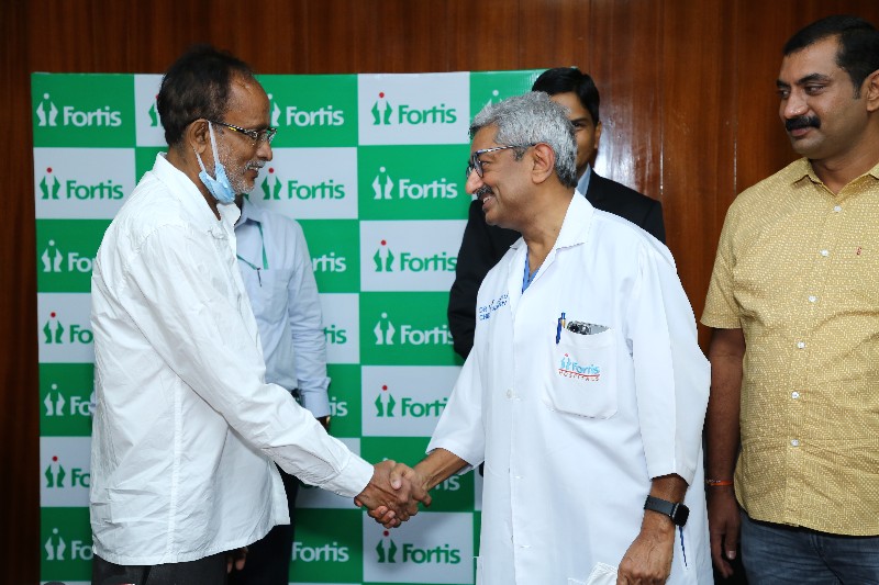 Dr Jawali, further elaborated “He was shifted to Fortis Hospital, Bannerghatta Road from Mandya to undergo Surgery. Considering his condition and multiple complications, we created a workup plan to stabilize his condition to be able to go ahead with the surgery. He was admitted in the hospital in the mid of May for a week. We stabilised his condition and sent him back to Mandya for his recovery. Over a period of one month, his condition improved and was admitted at Fortis Hospital in mid-June for undergoing coronary angioplasty. The surgery was performed successfully without any complications and the patient had a very smooth recovery. We are glad that he is completely stable now and feel happy that though he had a major setback, we could help with the best of our treatment to give him a healthier life. We wish him a productive and healthy life, we wish him best of health and a long life.”