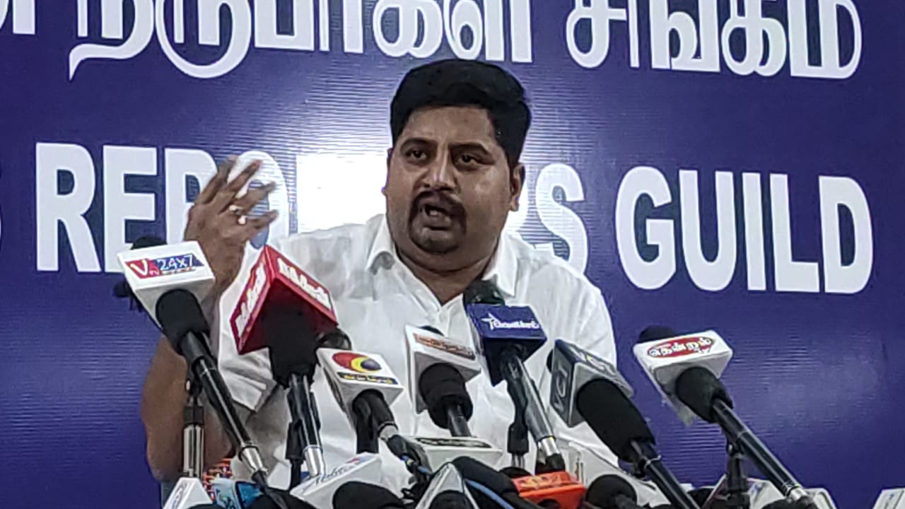 சென்னை சேப்பாக்கத்தில் உள்ள ரிப்போர்ட்டர்ஸ் கில்டில், கிருஷ்ணகிரி மாவட்டத்தை சேர்ந்த ரியல் எஸ்டேட் தொழில் செய்து வரும் அருண்குமார் என்பவர் செய்தியாளர்கள் சந்திப்பில் பேசியது.