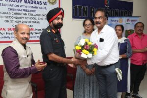 Thiru Ma. Subramaniam, Hon’ble Minister for Health & Family Welfare, inaugurated the event through video conference. He said that Tamil Nadu is a leading state in blood donation. He highlighted the importance of blood donation and how it is critical to save several lives. He wished and congratulated Rotary Club of Chennai Prestige and NCC for the program.