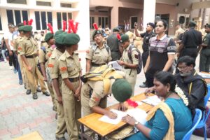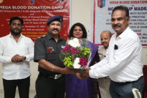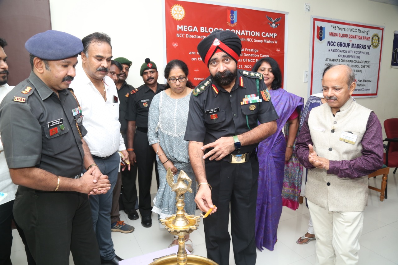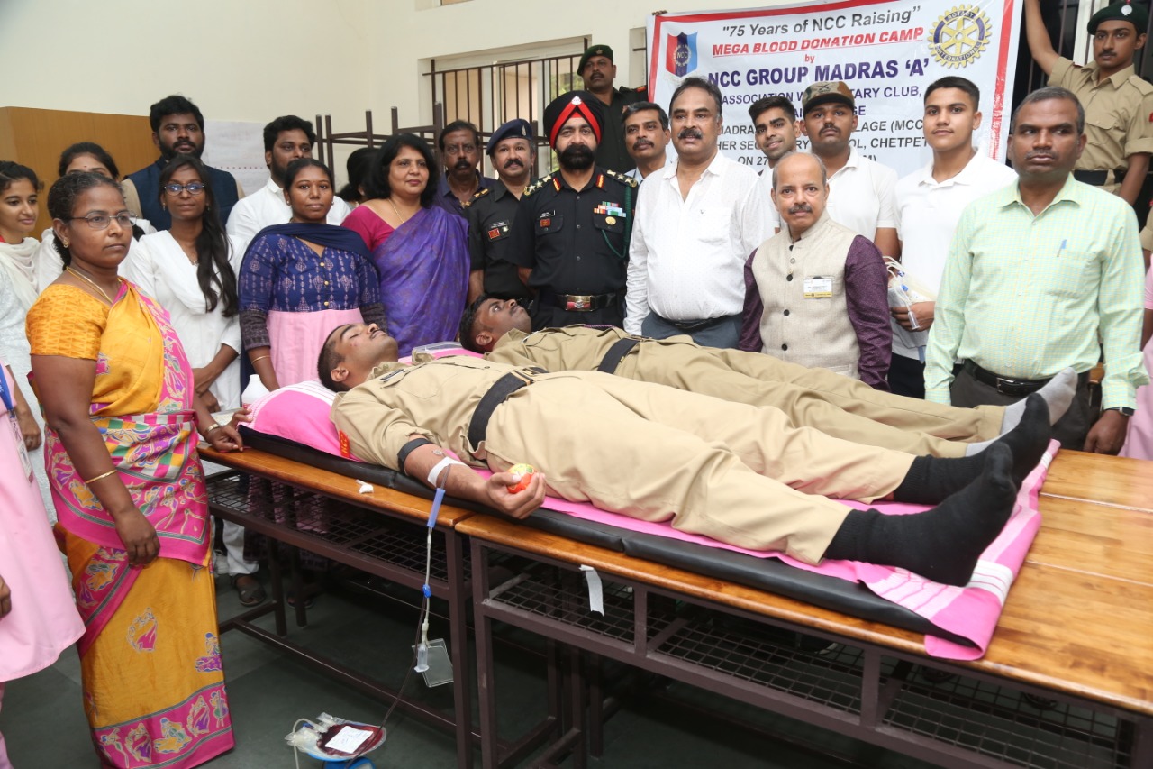 To mark the occasion of the 75th NCC Raising Day, 1 (TN) R & V Sqn NCC and other units of NCC Group Madras A organized a Mega Blood Donation Camp on November 27, 2022 at MCC Senior Secondary School, Chetpet. NCC organized the event in association with the Rotary Club of Chennai Prestige (RCCP). 504 donors registered for the blood donation at the venue.