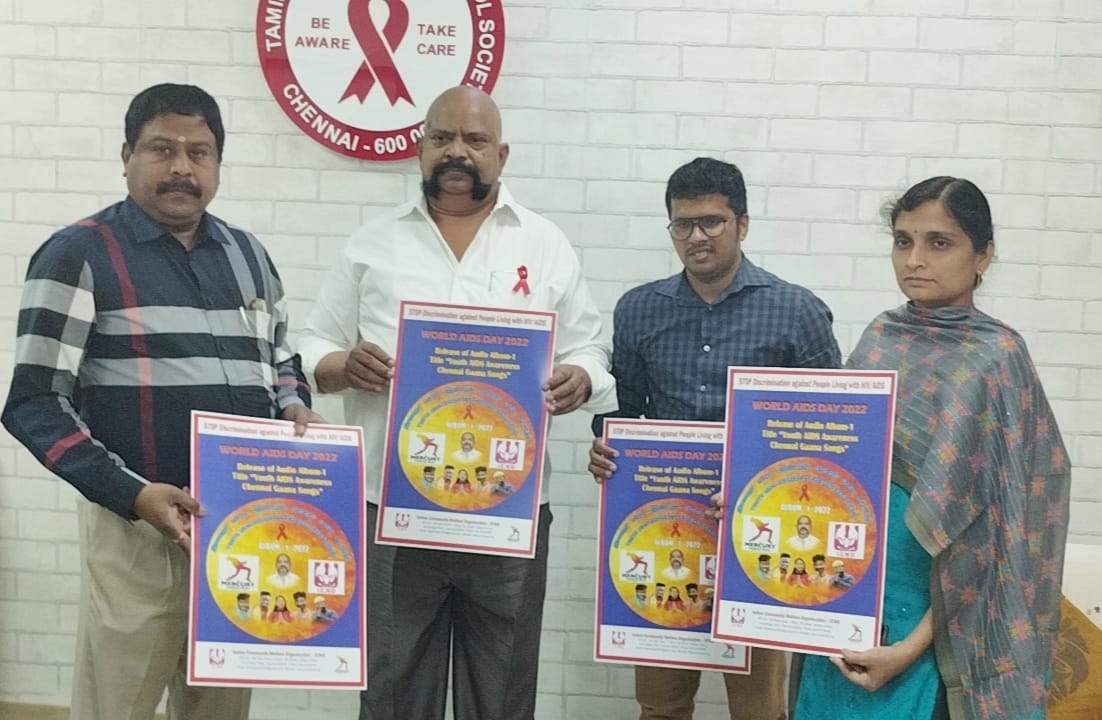 டிசம்பர் 1ல் உலக எய்ட்ஸ் ஒழிப்பு தினம் கடைபிடிக்கப்படுகிறது. இதையடுத்து இந்திய சமுதாய நல்வாழ்வு அமைப்பு (ICWO), தமிழ்நாடு மாநில எய்ட்ஸ் கட்டுப்பாடு சங்கம் (TANSACS) சார்பில் இளையோர் எய்ட்ஸ் விழிப்புணர்வு கானா பாடல்கள் அடங்கிய குறுந்தகடு மற்றும் விழிப்புணர்வு சுவரொட்டி வெளியீட்டு விழா சென்னை எழும்பூரில் உள்ள தமிழ்நாடு மாநில எய்ட்ஸ் கட்டுப்பாடு சங்க வளாகத்தில் நடைபெற்றது.