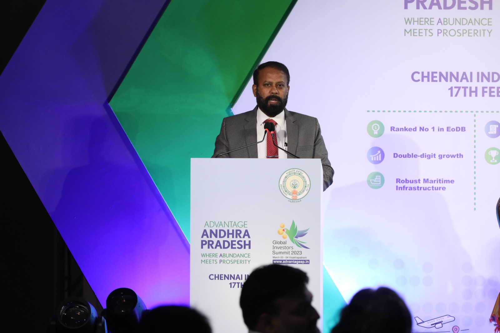 The state of Andhra Pradesh is showcasing its rich natural resources, large investments in infrastructure, land bank, and intensive reforms in rules and regulations at a successful investors meeting in Chennai. These efforts, taken together, position Andhra Pradesh as the state where abundance meets prosperity. The event is one of many such meets being organised in the run-up to the Global Investors Summit on March 3 rd -4 th 2023 in Visakhapatnam.