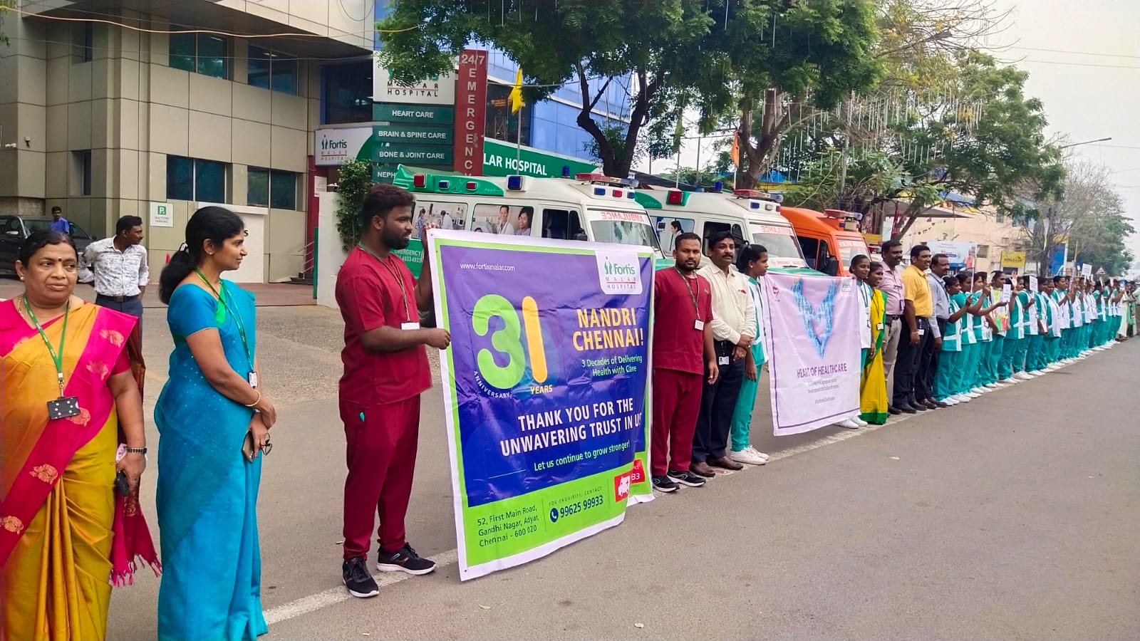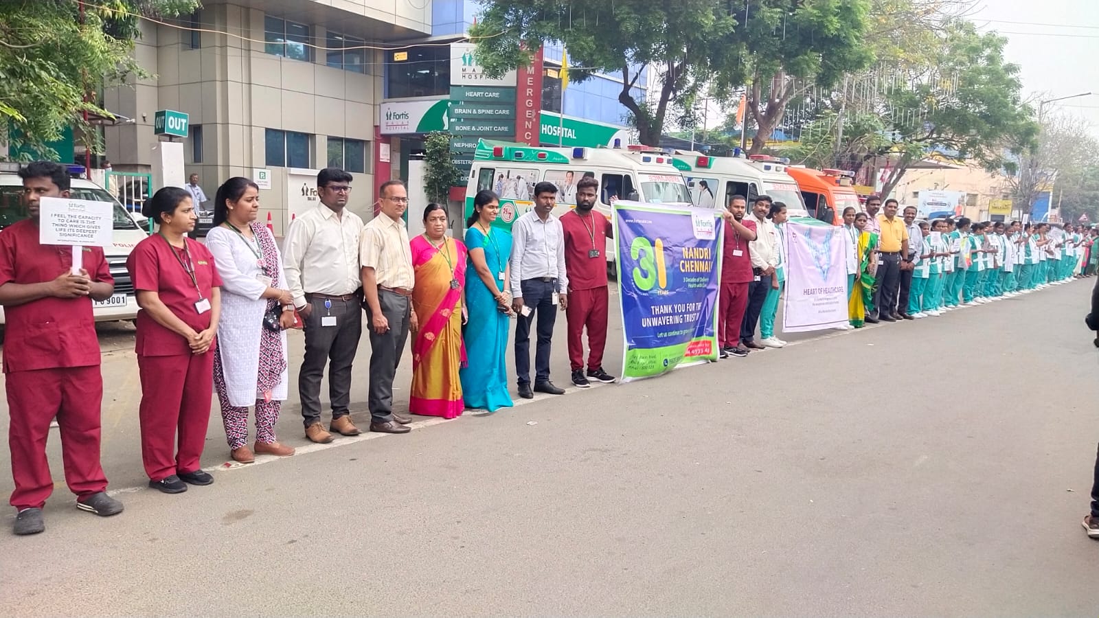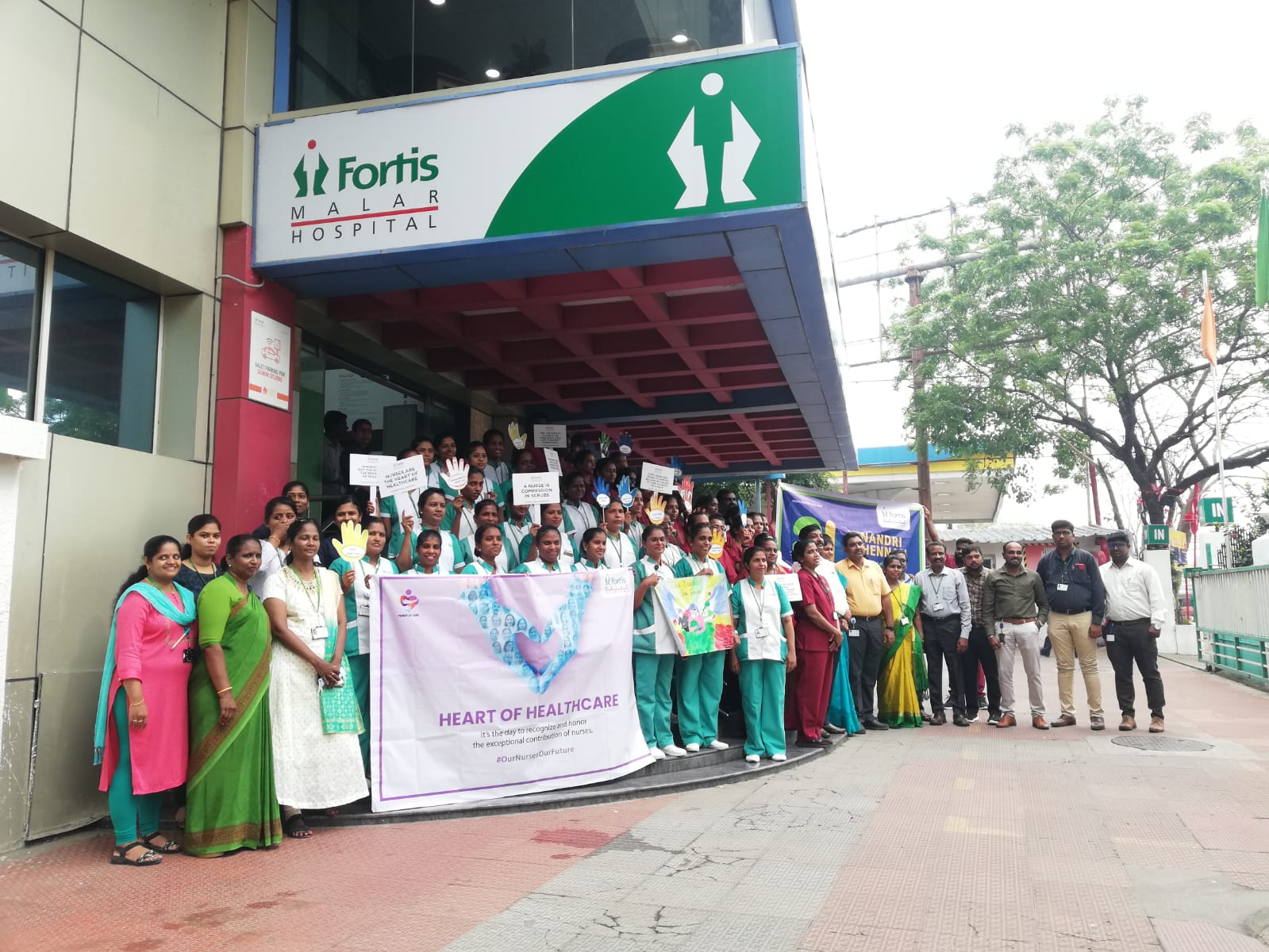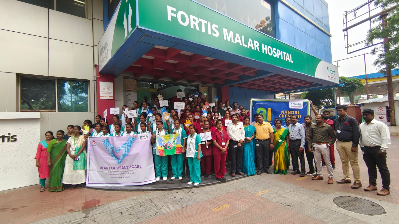 Fortis Malar Hospital forms a grand human chain to celebrate International Nurses Day