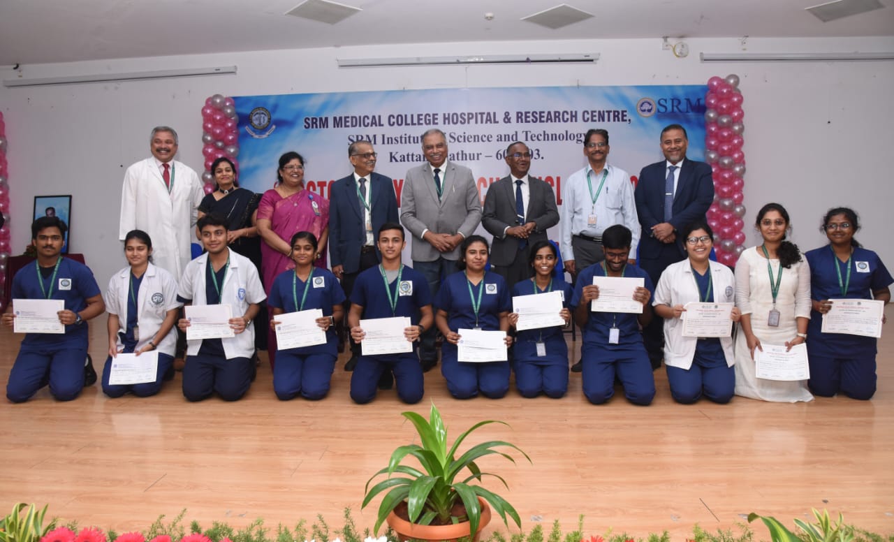 Dr A Sharmila, Associate Dean (SA) at SRMMCHRC welcomed the gathering. Dr. K V Leela, Associate Dean (UG) at SRMMCHRC spoke about the research conclave. Associate Dean (QA) at SRMMCHRC proposed vote of thanks. Dr A Sundaram, Dean (Medical), SRMMCHRC was among those present.