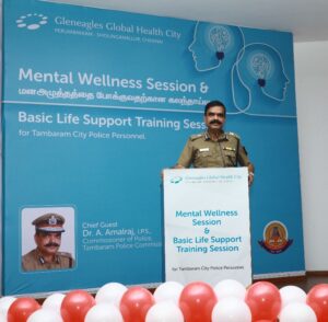Commenting on the initiative, Dr. Alok Khullar, CEO, Gleneagles Global Health City, said, “We are honored to collaborate with the Tambaram Police Commissionerate to offer this mental wellness session for our valued police personnel. They selflessly dedicate their lives to ensuring the safety and security of our community, often at the expense of their own well-being. Through this initiative, we hope to provide them with the support they need to navigate the challenges of their profession and maintain optimal mental health.”