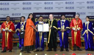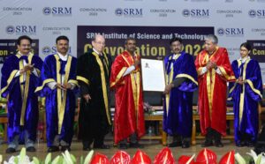 Secretary of Ministry of AYUSH of Government of India Vaidya Rajesh Kotecha and Dr P Veeramuthuvel, Project Director of Chandrayaan – 3, ISRO (Bengaluru) were presented Honorary Degree of Doctor of Science (D.Sc.) by Dr T R Paarivendhar, Founder Chancellor of SRMIST.