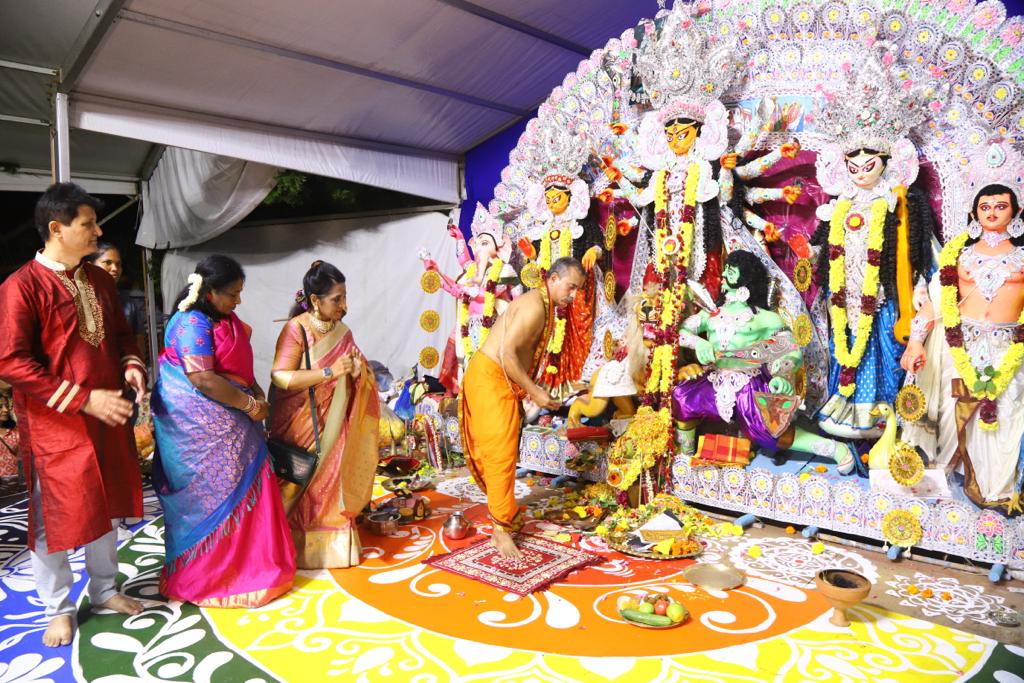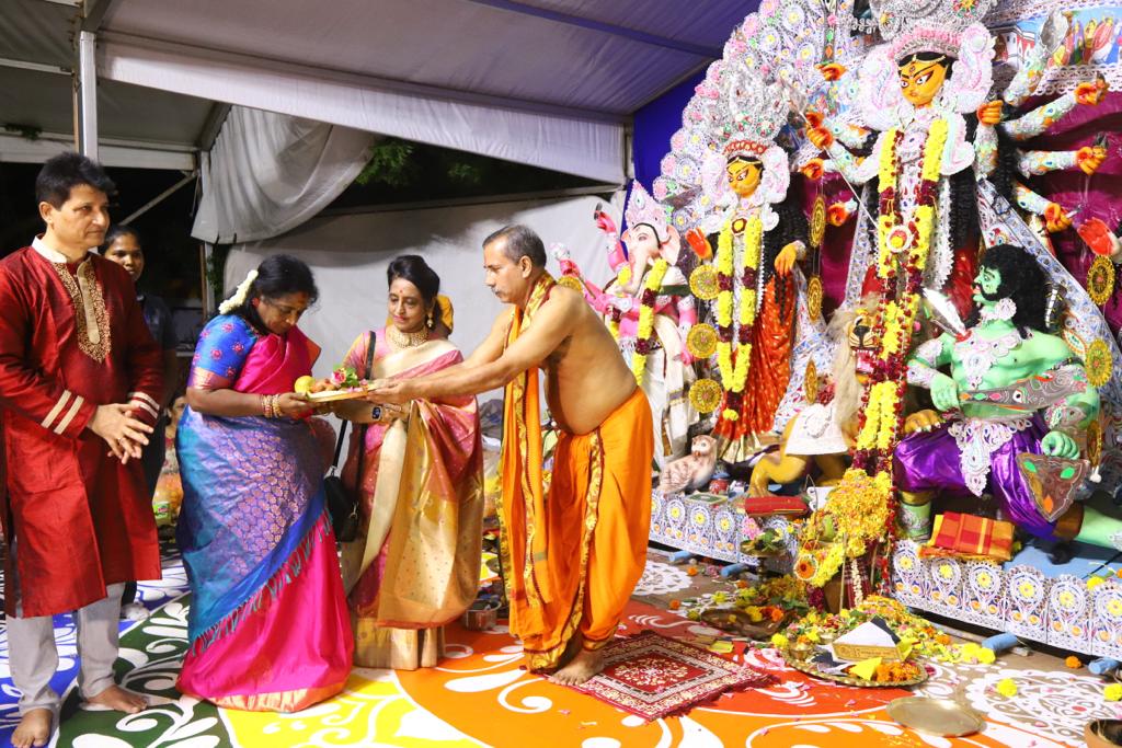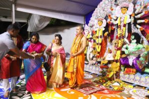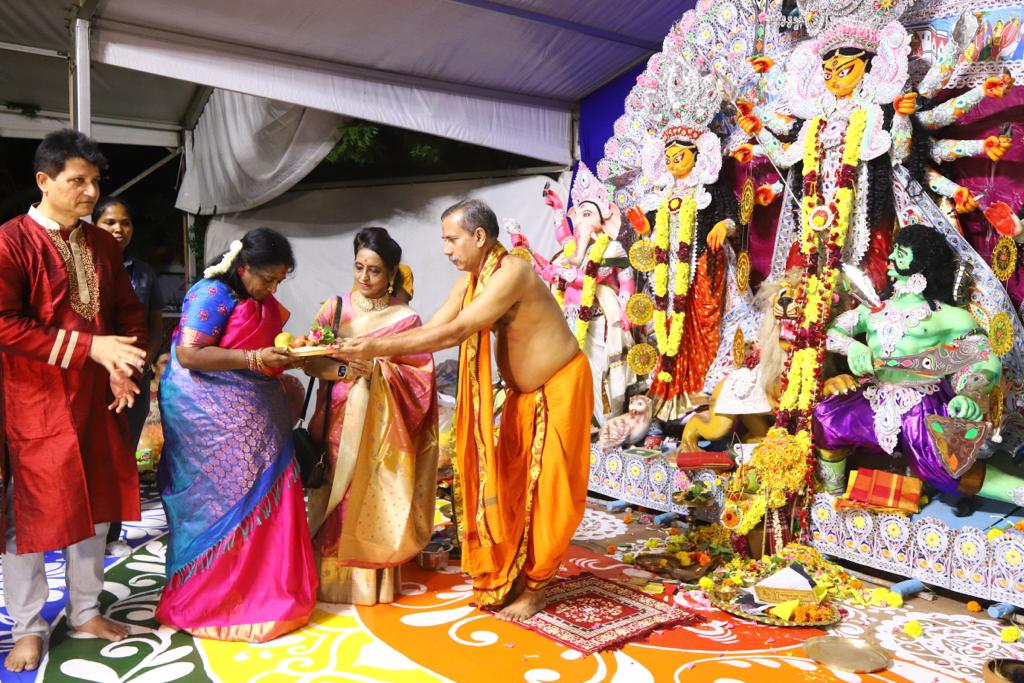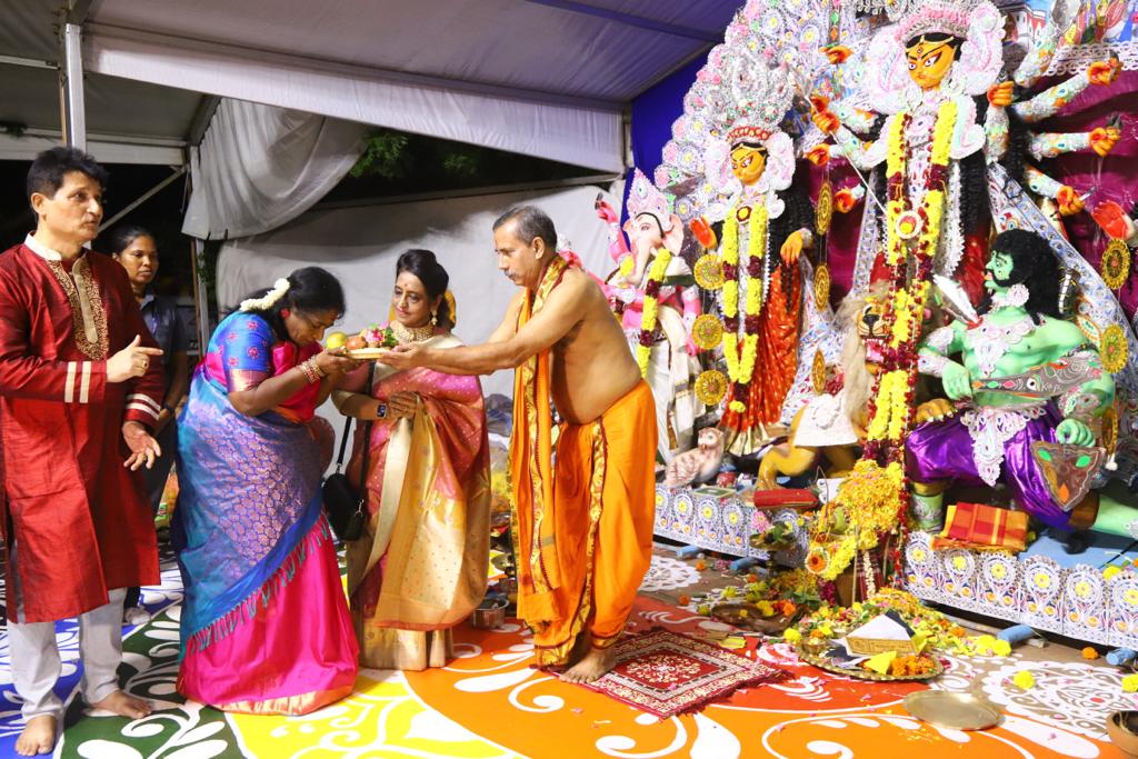 துர்கா பூஜையின் தொடக்க விழா, ஷரத்சவ்’ 23 என்ற தலைப்பிலான நிகழ்வை கௌரவ. கவர்னர், ஸ்ரீமதி. தமிழிசை சௌந்தர்ராஜன், இன்று, சனிக்கிழமை, அக்டோபர் 21, ஈஞ்சம்பாக்கம் கைலாஷ் கன்வென்ஷன் சென்டரில் ECR இல். கௌரவ ஆளுநர் முதலில் துர்கா தேவியிடம் பிரார்த்தனை செய்தார்.