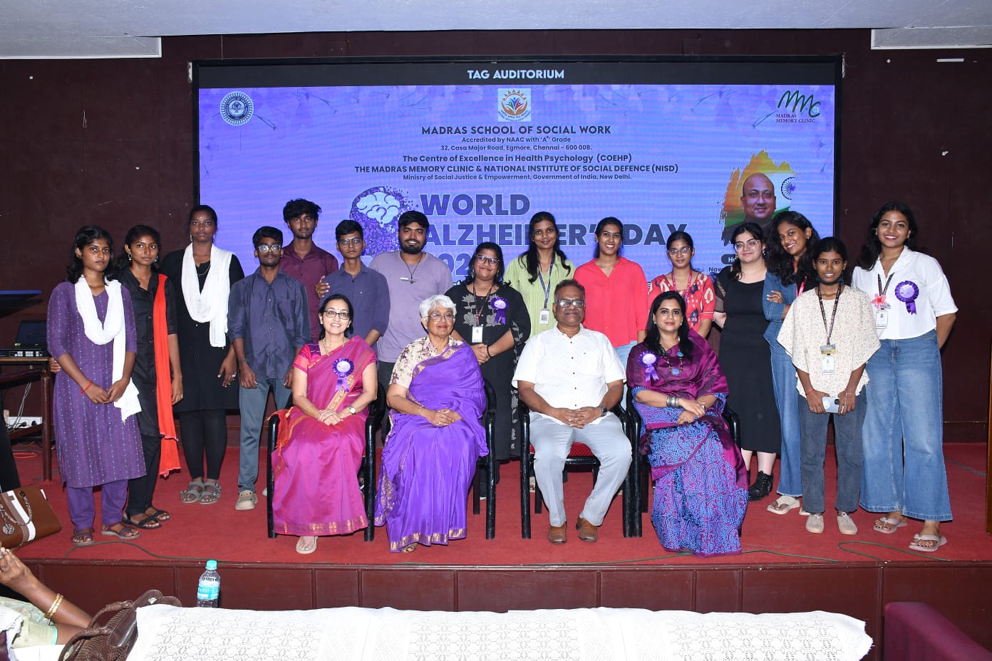 The Madras School of Social Work (MSSW), through its Centre of Excellence in Health Psychology (CoEHP), in collaboration with the Madras Memory Clinic and supported by the National Institute of Social Defence (NISD), Government of India, observed World Alzheimer’s Day 2025 at the TAG Auditorium, Egmore.