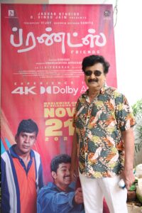 ஸ்வர்க்கசித்ரா அப்பச்சன் தயாரிப்பில் சித்திக் இயக்கத்தில் இசைஞானி இளையராஜா இசையில் விஜய்-சூர்யா இணைந்து நடித்து 2001ம் ஆண்டில் வெளியாகி மிகப்பெரிய வெற்றியைப் பெற்ற ‘ப்ரண்ட்ஸ்’ திரைப்படம் 24 ஆண்டுகளுக்கு பின்னர் 4K தொழில்நுட்பத்தில் புதுப்பிக்கப்பட்டு வரும் 21ம் தேதி முதல் உலகம் முழுவதும் திரையரங்குகளில் ஜாக்குவார் ஸ்டுடியோஸ் சார்பில் தயாரிப்பாளர் B. வினோத் ஜெயின் வெளியீட்டில் மீண்டும் திரைக்கு வருகிறது. இப்படத்தின் ட்ரெய்லர் வெளியீட்டு விழா சென்னையில் சிறப்பாக நடைபெற்றது.