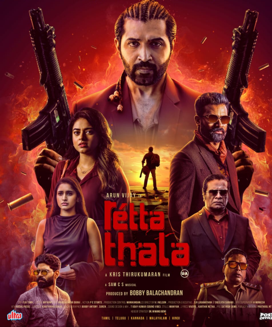 Retta Thala movie is a action-packed thriller is a must-watch for fans of high-energy action and style. Arun Vijay delivers a performance that will delight his fans. With its unpredictable plot twists, the film keeps the audience engaged, setting up surprises at the beginning, during the interval, and in the final scenes, ensuring a thrilling ride from start to finish.