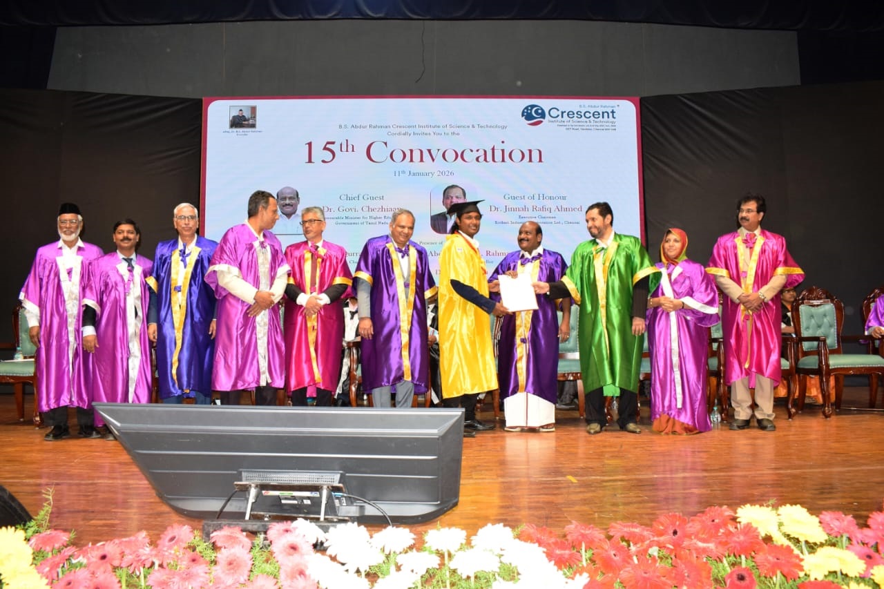 பி. எஸ். அப்துர் ரஹ்மான் கிரசென்ட் அறிவியல் மற்றும் தொழில்நுட்ப நிறுவனத்தில் 15வது பட்டமளிப்பு விழா நடைபெற்றது